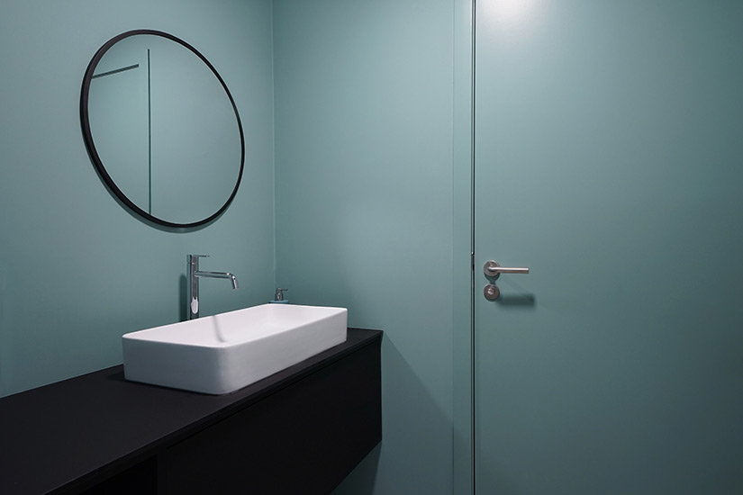 - un comptoir d’accueil en arc de cercle pour une bonne ergonomie de passage.