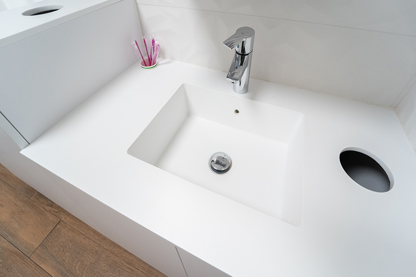 - Plans de travail et éviers rectangulaire en solide surface (Corian)
