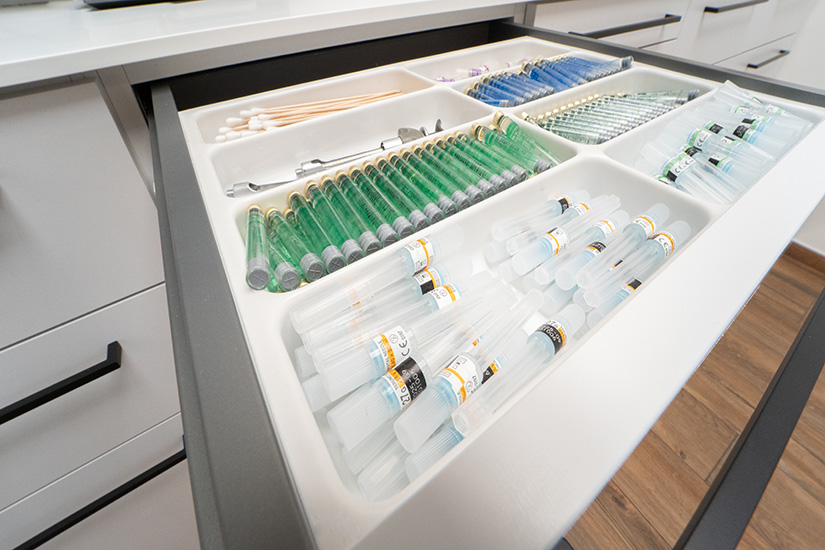 Nous avons entièrement meublé à Mons une clinique dentaire composée de huit salles de soins.